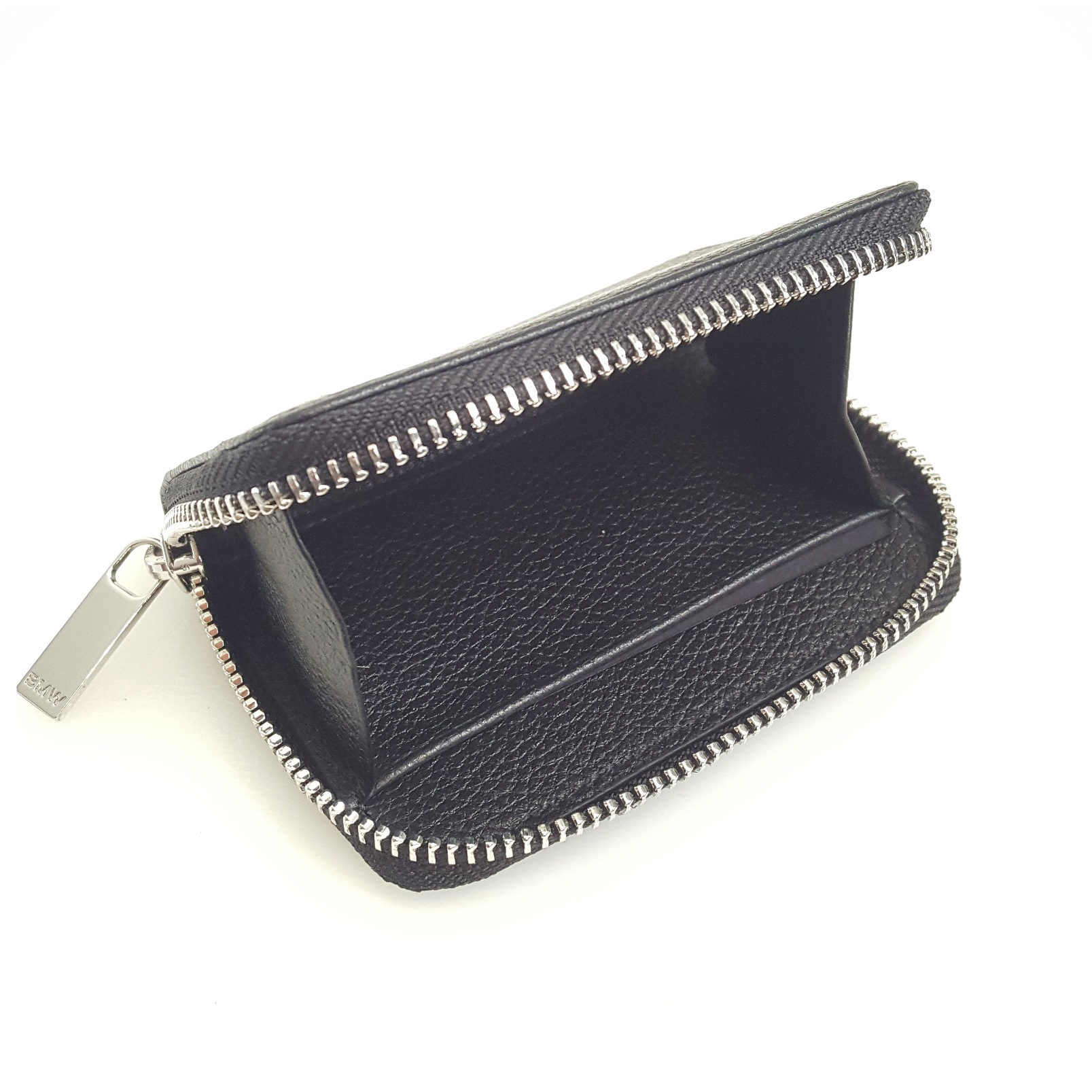 Элегантный карманный кошелек из натуральной кожи. Подкладка: 100% полиэстер. Черная структурированная кожа внутри и снаружи, 2 слота для карт, 1 отделение для купюр атласная подкладка. Застежка-молния с надписью BMW. Металлический логотип BMW на передней панели. Цвет: черный. Размеры: 10,5 х 7,5 см.