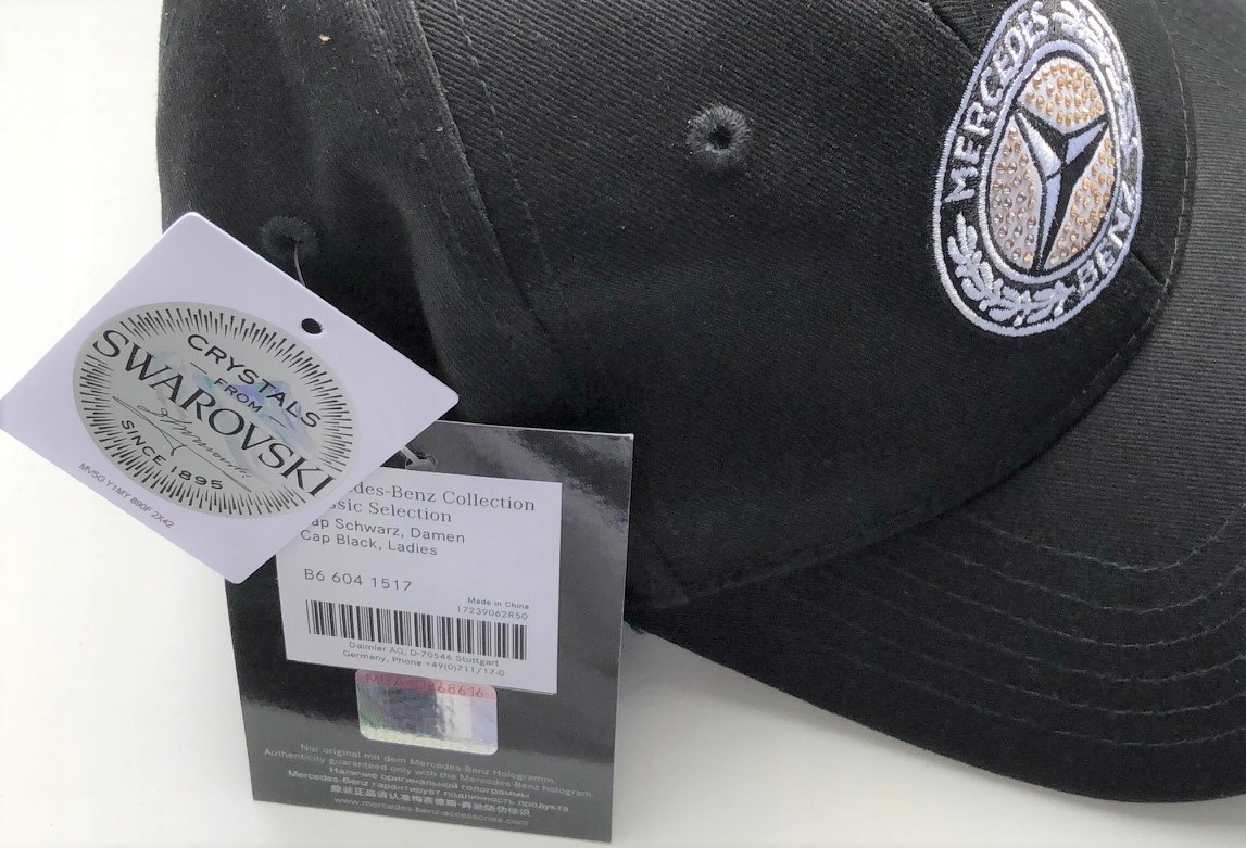деланная из 100% хлопка бейсболка черного цвета с регулируемым размером отличается особенно приятным комфортом ношения. Привлекательный дизайн бейсболки также достоин внимания: вышитая историческая надпись «Mercedes» золотистого цвета сзади и историческая звезда «Мерседес-Бенц» с кристаллами Swarovski® впереди. Регулируется по размеру с помощью металли- ческой застежки.