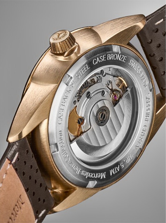 Часы имеют исторический логотип «Мерседес-Бенц» в положении «12 часов» и стрелки бронзового цвета. Коричневый кожаный ремешок с перфорацией и высококачественной классической застежкой из бронзы обеспечивает максимальный комфорт ношения. В результате химического процесса на бронзе со временем может образоваться налет патины, который изменит ее цвет. При разработке часов согласно дизайнерской философии «Мерседес-Бенц» особое внимание было уделено использованию натуральных материалов. На сегодняшний день бронза является очень популярным в области аксессуаров материалом для производства часов и украшений для мужчин. Цвет: бронзовый/коричневый. Материал: бронза/нержавеющая сталь/кожа. Диаметр: 42 мм. Водонепроницаемые до 5 ATM. Часовой механизм Sellita SW 200 с автоподзаводом. Сделано в Швейцарии. С этим товаром покупают b66041922 18900 руб.