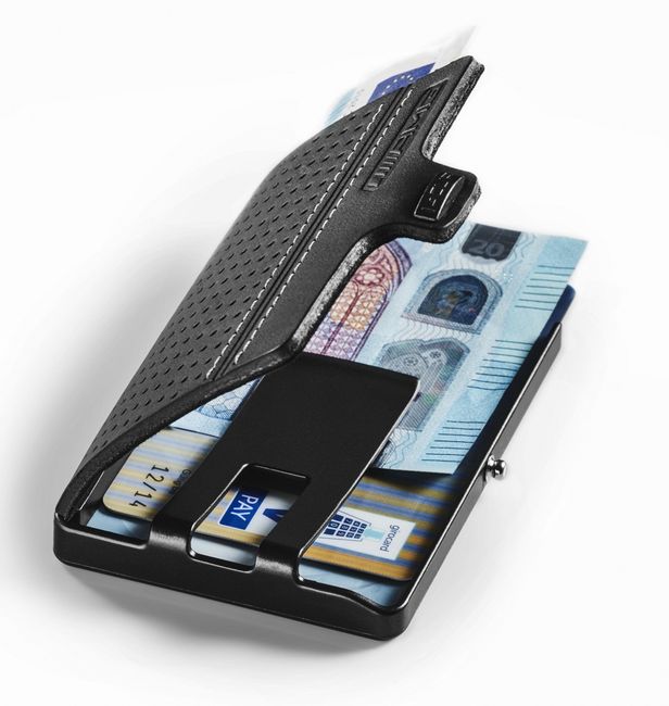 Вмещает в себя до двенадцати карт. Под кожаной крышкой находится эргономичный, надежный, эластичный зажим для банкнот. Защелка на кнопке обеспечивает дополнительную конфиденциальность. Кошелек I-CLIP AMG выдержан в черном цвете и украшен тиснением AMG. Благодаря компактным размерам его удобно носить с собой – в кармане брюк, пиджака или рубашки. Цвет: черный, детали серебристого цвета. Материал: надежный, эластичный пластик ROBUTENSE/оригинальная автомобильная кожа. Размеры: прибл. 8,7 x 6 x 1,6 см. Запатентованная система хранения карт. Сделано в Германии. С этим товаром покупают B66952763 5900 руб.